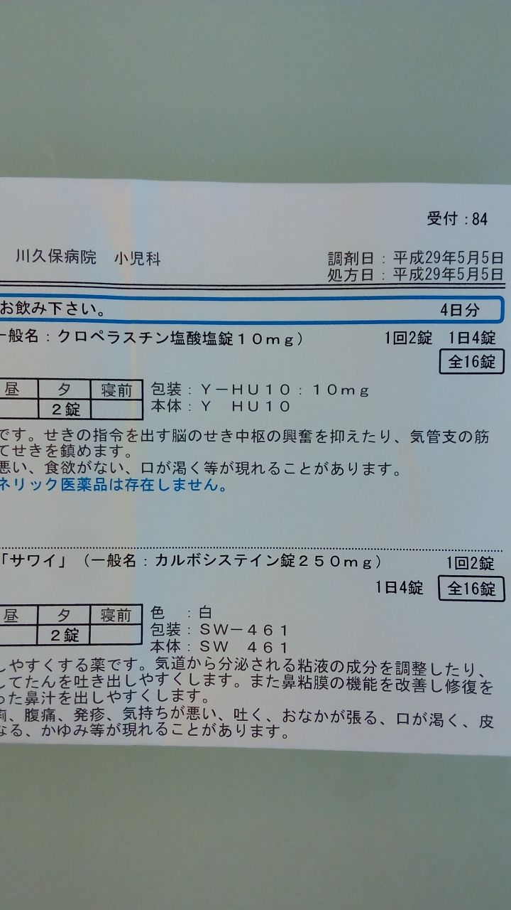 今朝、熱を測ったら平熱に下がったので昨日の